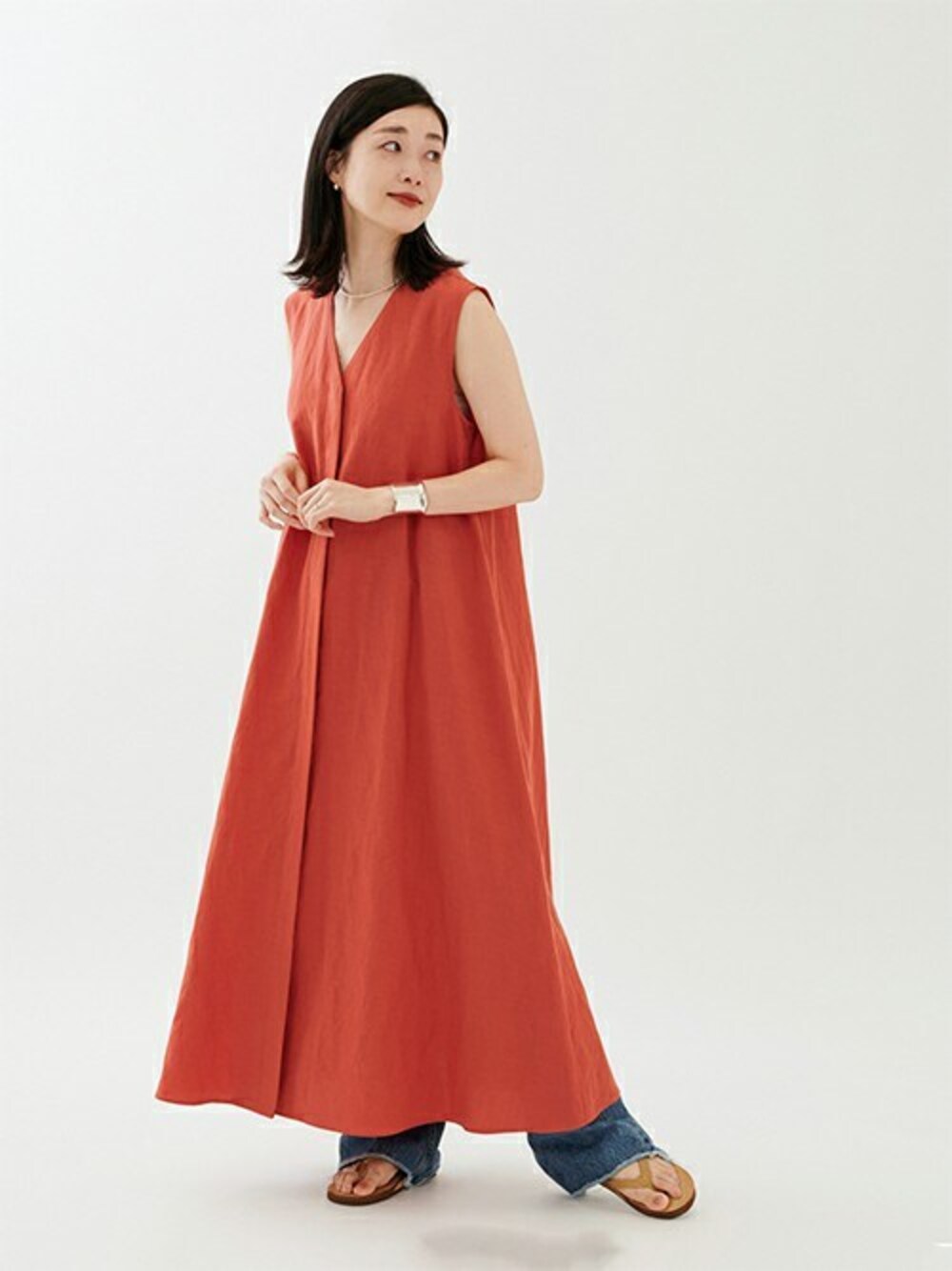 AYAKOのワンピース「リネンミックスVネックワンピース」を使ったコーディネート