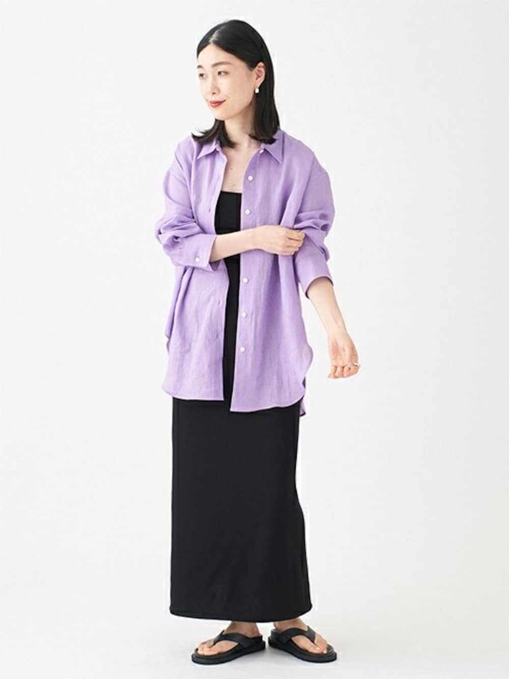 ◆オーガニックリネンロングシャツ シンプルなデザインで使いやすいオーガニックリネンシャツ。 さらっとしたリネンの風合いが楽しめる1枚は持っていたい大人なシャツです。 やや長めな着丈なのでどんなボトムスとも相性抜群です◎ 肩を抜いてすっきり見せると程よくヌケ感が出てキマります。 同シリーズでオーガニックリネンショートシャツ(品番:22050370209020)もございます。 ********************** 透け感:ブラックややあり ホワイト、パープルBあり 裏地:なし 伸縮性:なし 光沢感:なし 生地の厚さ:薄手 **********************