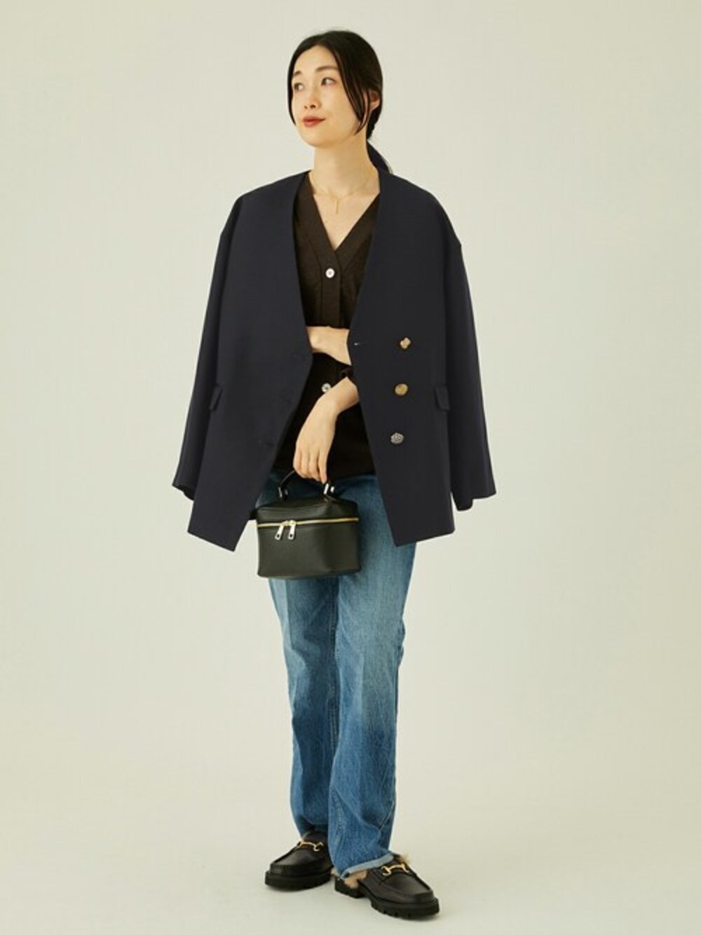 AYAKOのノーカラージャケット「ヴィスウールノーカラージャケット」を使ったコーディネート