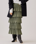 大人っぽい印象のティアードスカート。 ストレートなシルエットでシックな雰囲気を演出してくれる一枚です。 生地にプリーツが入っているので、甘くなりすぎず◎ 動きが出て、穿くだけでポイントになります。 カットソーでラフに合わせたり、ジャケットなどすっきりしたものと合わせて、 甘辛なコーディネートもおすすめです。 ********************** 透け感:なし 裏地:あり 伸縮性:なし 光沢感:ややあり 生地の厚さ:普通 **********************