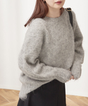 ◆アルパカMIX スパンコールニットプルオーバー アルパカMIXの糸を使用した暖かくて軽いニットが登場。 小さめなスパンコールがランダムに散りばめられ、動くたびにキラキラして華やかな雰囲気になります。 ラグランスリーブなので肩馴染みも良く、前後差のある着丈が一枚で様になり◎ ボトムも選ばず幅広いコーデで万能に着まわせます。 ********************** 透け感:なし 裏地:なし 伸縮性:あり 光沢感:なし(スパンコールあり) 生地の厚さ:普通 ********************** 【スタッフ着用コメント】 《スタッフ N》 年齢:40代前半/身長:165cm/着用サイズ:FREE サイズ感:スリーブもゆとりあるデザインで全体的にゆったりしてます。 素材感:ふわふわとした起毛のある毛足で、柔らかくて暖かいです。 着心地:見た目より軽くて、スパンコールが華やかな雰囲気にしてくれます。 **********************