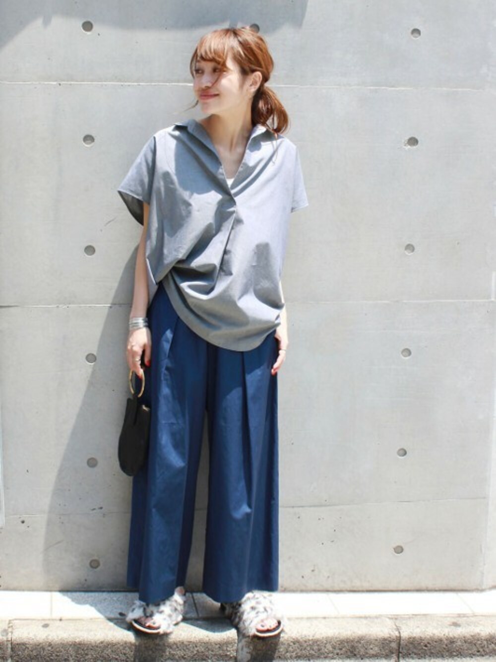 軽さのあるコットン素材が夏に着心地の良いワイドパンツ! リラックスした夏のスタイルにぴったりなコットン素材のワイドパンツはシャツと合わせてこなれた雰囲気に!