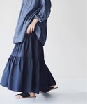汗ジミ防止ノースリーブTシャツ シンプルなノースリーブカットソーに、ロマンティックなティアードデザインのメモリースカートを合わせて。 女性らしいイメージながらも、微光沢のメモリー素材なのでほどよいハリ感と、ボリューム感でTシャツを程よくドレスアップ。 甘くなりすぎないように足元はスポサンで外すのが◎ サイズ感:肌のラインを広い過ぎないゆとりがあるサイズ感。 素材感:さらさらした軽い肌触り。 着心地:袖口があきすぎず少し長めななので二の腕が気になる方にも◎