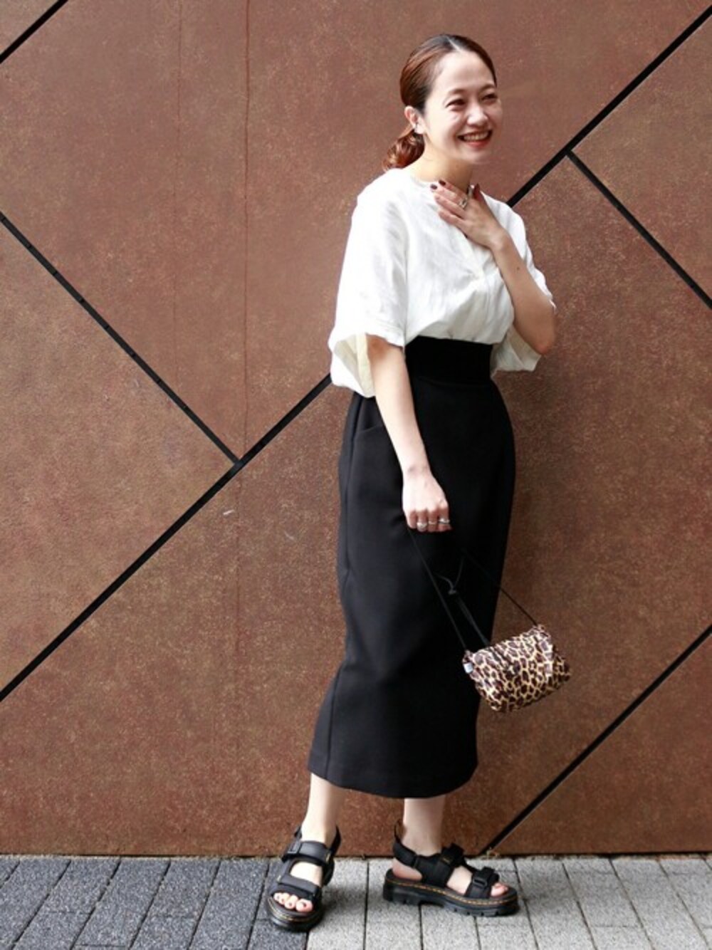 レーヨン麻ノーカラーブラウス レーヨン混の麻素材で清涼感がありつつ、着るだけで抜け感がでるブラウス。 程よい落ち感素材なので、オーバーサイズのシャツも女性らしい、しなやかな印象で着て頂けます。袖は肘が隠れる長さなのも嬉しいポイントです。 ゆったりとしたシルエットのシャツはパンツでいつもあわせることが多いですが、タイトスカートであわせても◎ ウエストインするとアームのたゆみ感が体を華奢に見せてくれる効果もあります。 綺麗めになりすぎないように足元はボリューム感あるマーチンのサンダルでカジュアルダウン。 サイズ感:程よくゆったりしています。 素材感:レーヨン麻で程よい落ち感と清涼感ある素材です。 着心地:さらっとしていて暑い時期にも涼しく着ていただけます。レーヨンが入っているので、麻のチクチク感も感じないです。