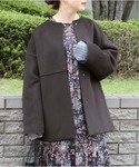 SANGU(JOURNAL STANDARD Lady's 本社 )のノーカラーコート「スーパー140ビーバーノーカラーショートコート」を使ったコーディネート