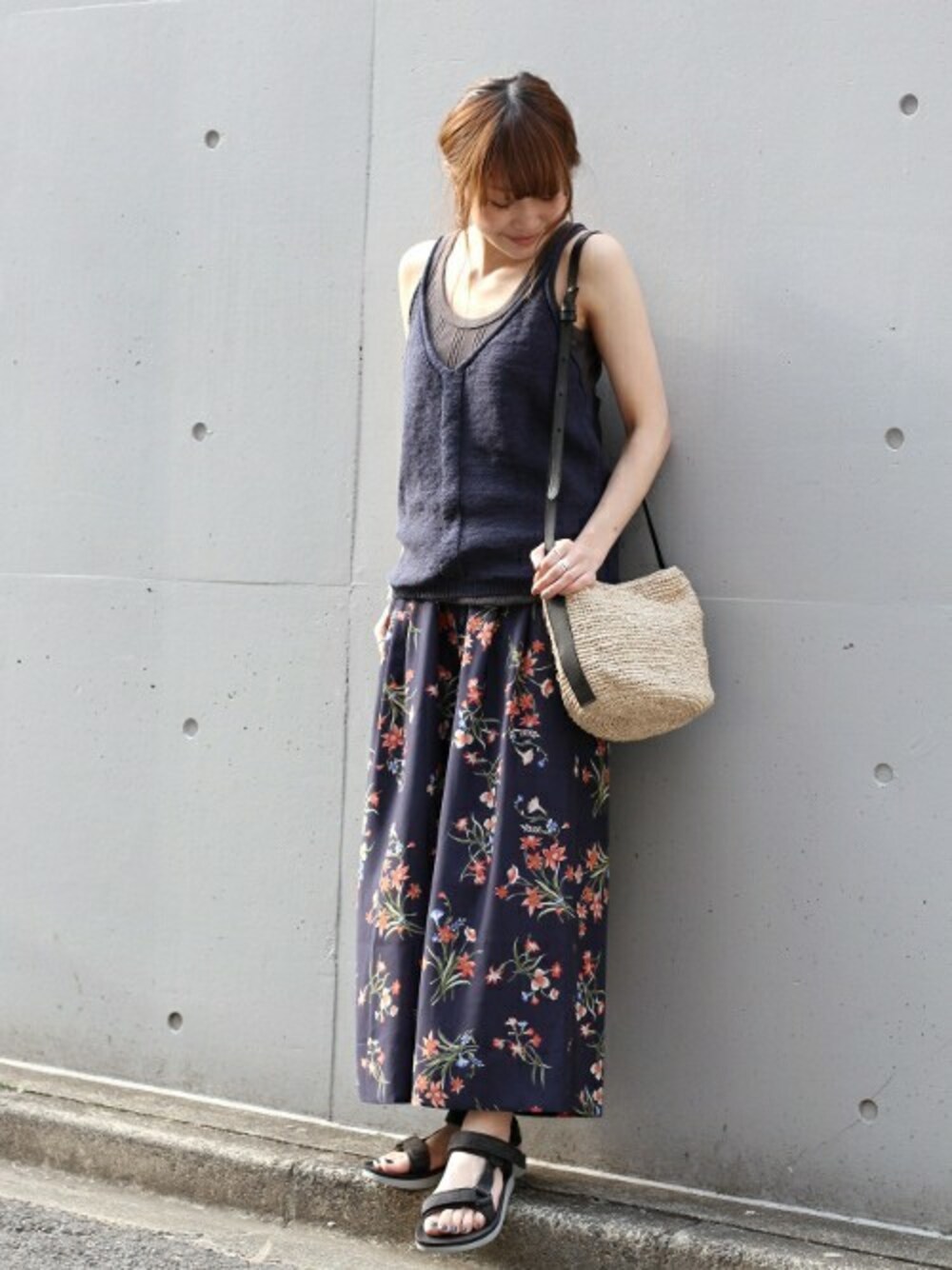 トレンドの花柄をワントーンで◎ 甘くなりがちな花柄アイテムはトーンをあわせて落ち着いた雰囲気に◎