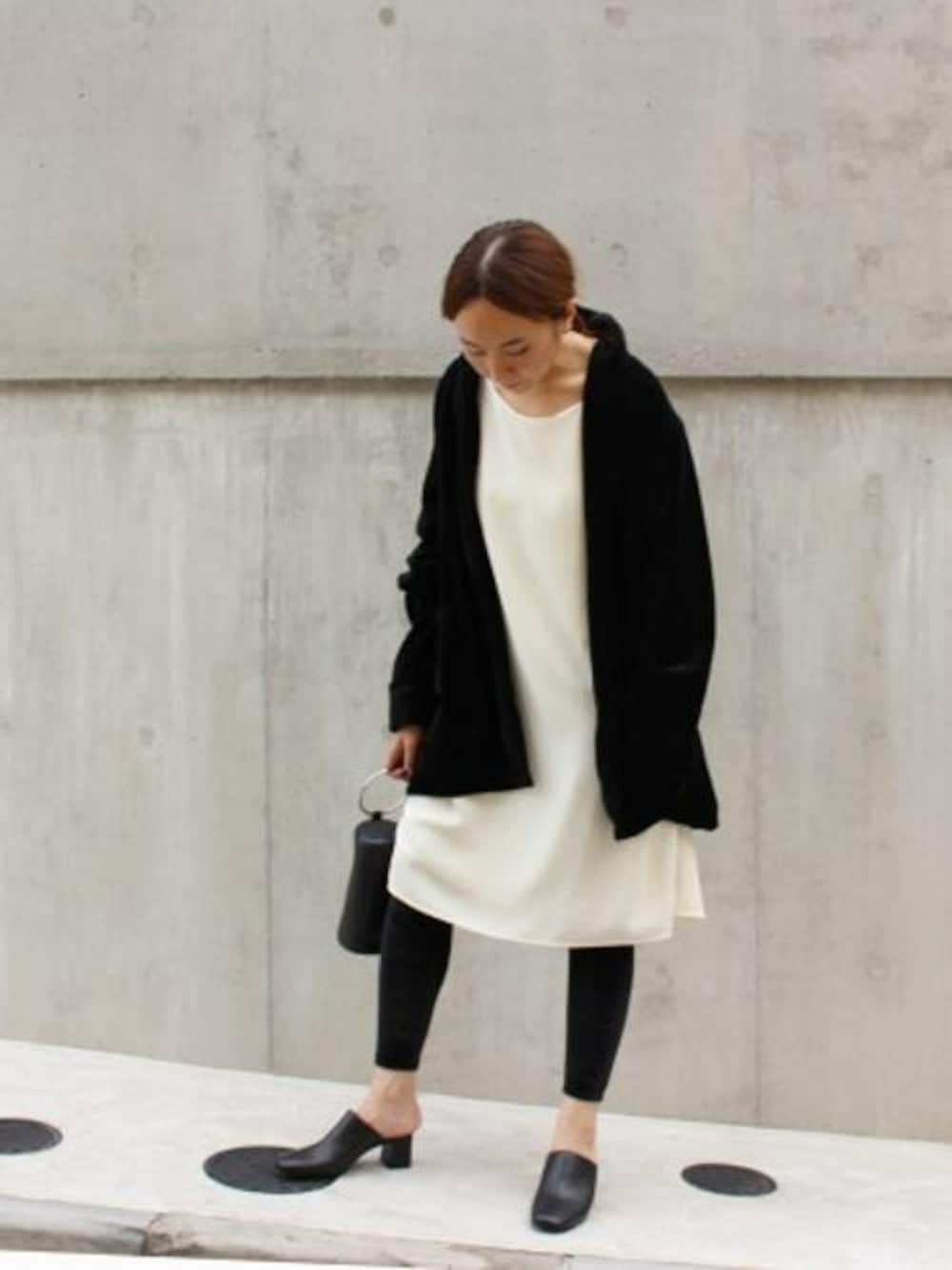 ◆EVERLASTベロアガウン 今年のトレンドキーアイテムでもあるベロア素材。 “RITO”の落ち感あるワンピースと合わせることで、大人の女性を演出!