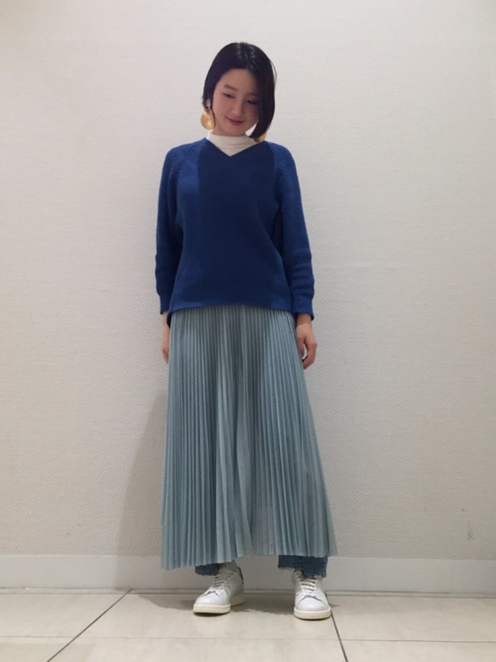 NAKATAのニット/セーター「コットンリリーカタアゼVネックヘンケイプルオーバー♯」を使ったコーディネート