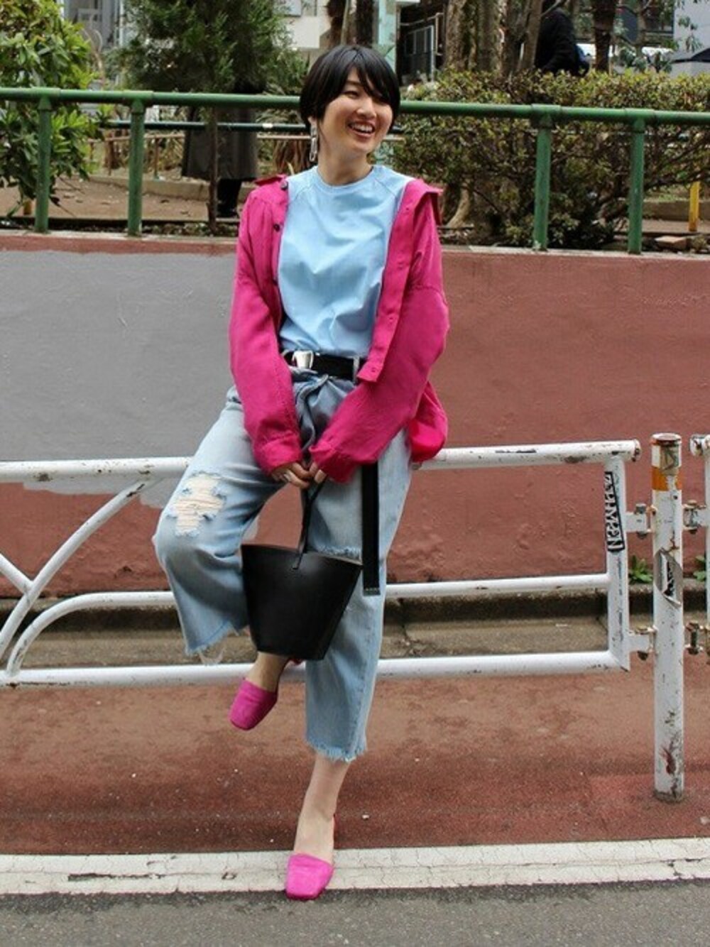 ◆EVER LASTカットソー 淡いブルーを基調とした”EVER LAST” のカットソーと”MM6”のデニムをベースに、鮮やかなピンクを差した濃淡コーディネート!!