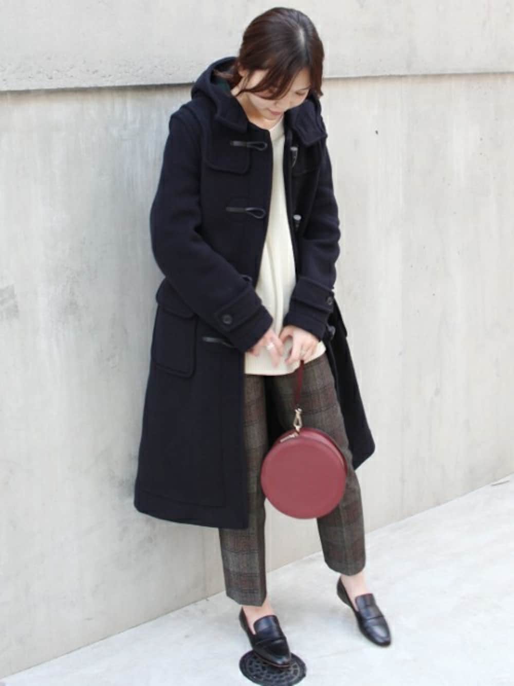 ◆大人なブリティッシュスタイル 程よくコンパクトですっきりとしたシルエットが魅力のダッフルコート。 トレンドのチェックパンツと合わせてブリティッシュなスタイルに。