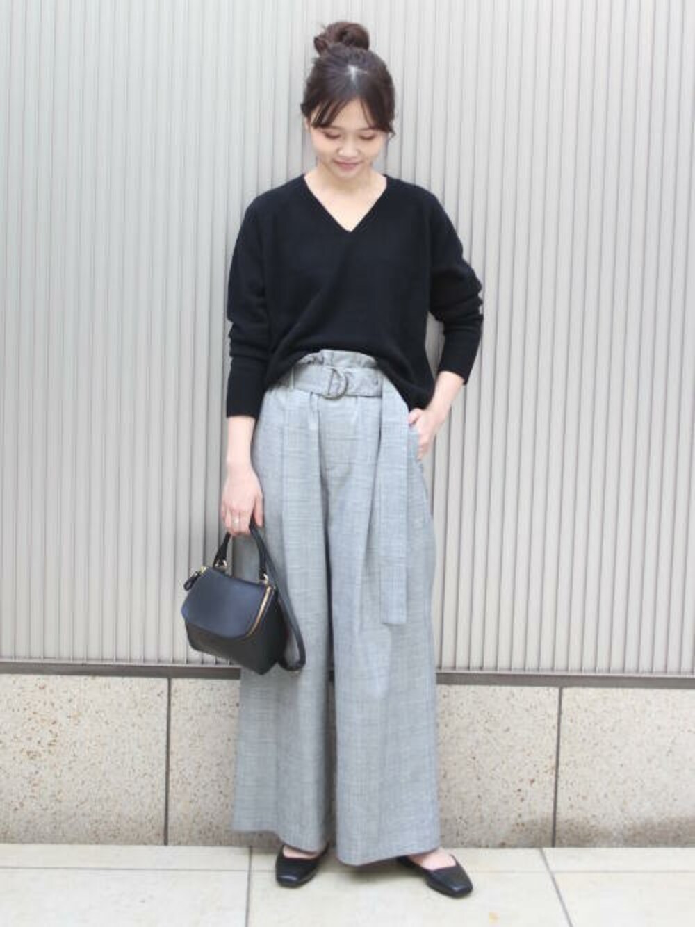 ◆TRグレンチェック ベルテッドパンツ 適度な落ち感でスタイル良く見せてくれるワイドパンツ。 ウエストはゴム仕様になっているのでストレスフリーな穿き心地です。 太めなベルトでウエストマークしてトップスインした着こなしが様になる一枚。