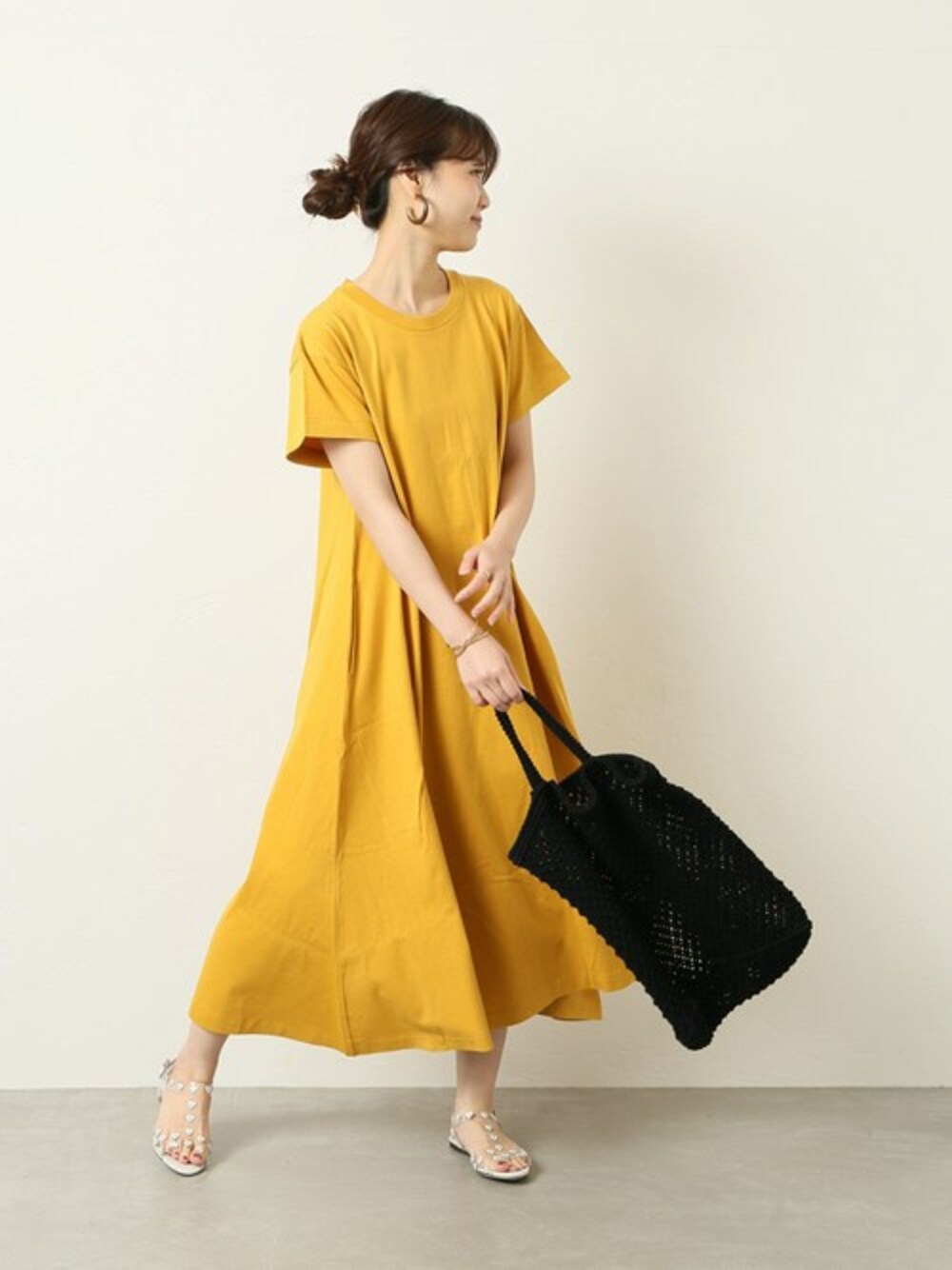 柔らかく肌触りの良い度詰め天竺素材を使用したマキシ丈ワンピース。