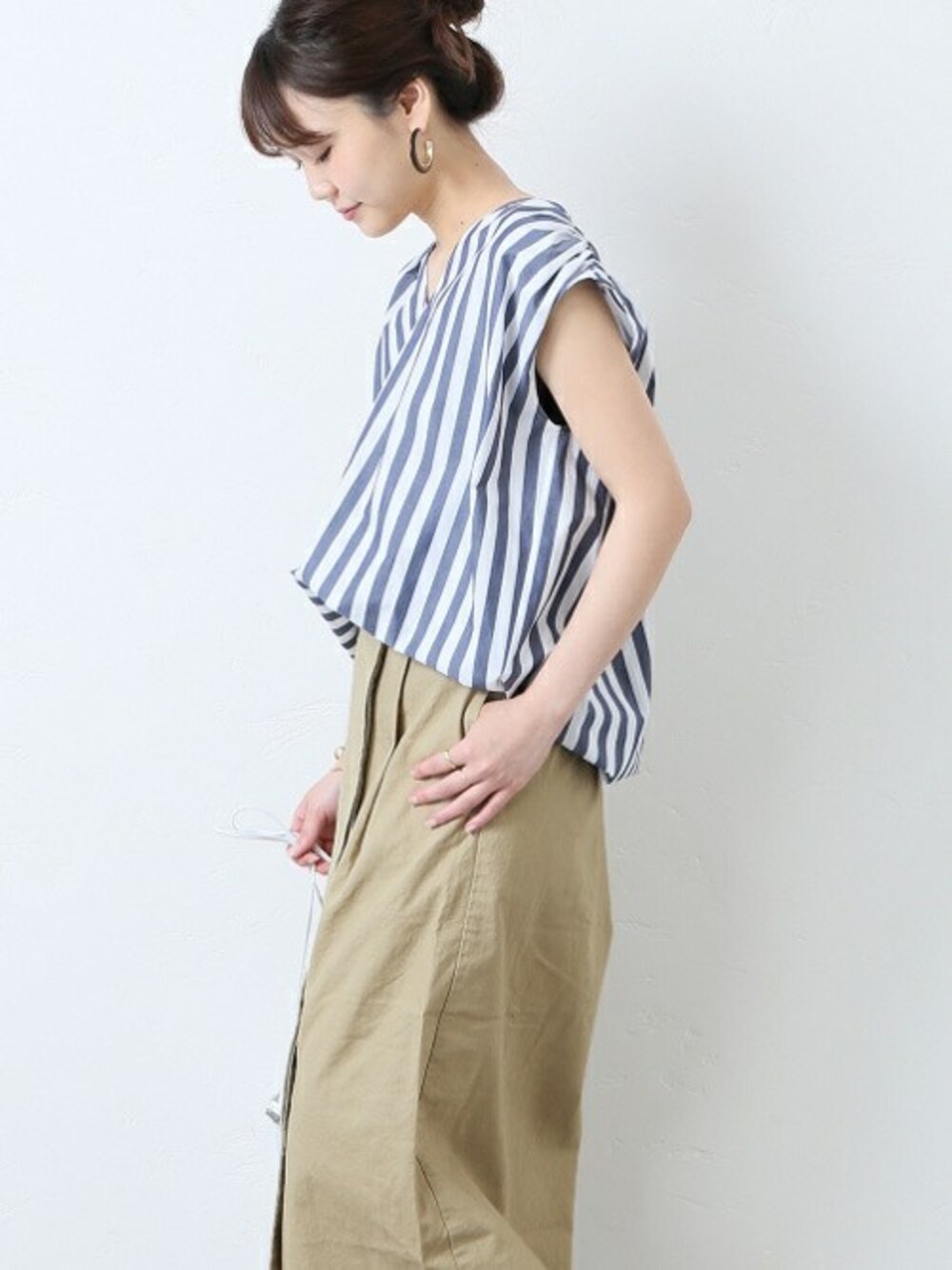 カジュアルにもキレイめにも穿ける!ラップスカート。ストライプブラウスでさわやかに。