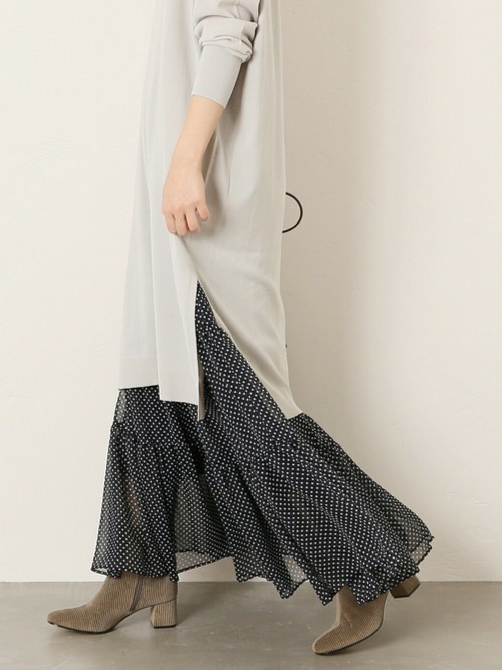 さらっとした着心地が特徴のⅤネックワンピース。 マキシスカートと合わせて、この秋冬もトレンドのレイヤードスタイルが完成する一枚です。