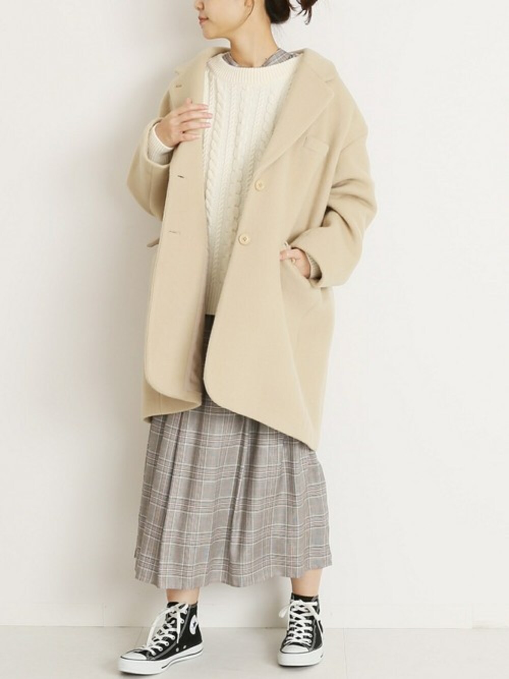 BIGシルエットのテーラードコートが登場! 淡色でまとめて柔らかい印象に。