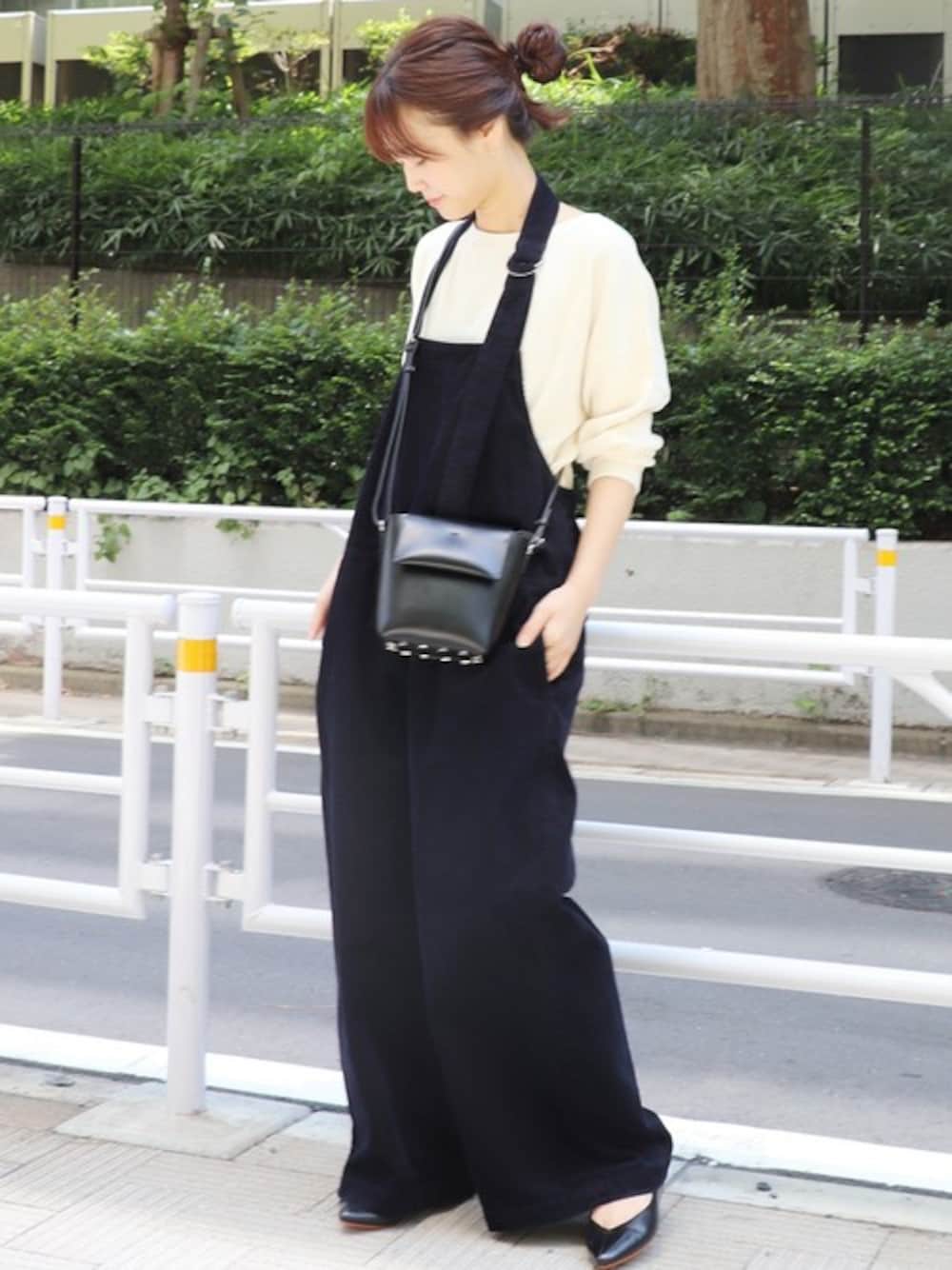 カジュアルに着れるコール素材のオールインワン 。 モノトーンアイテムでまとめれば大人っぽく着こなせます。