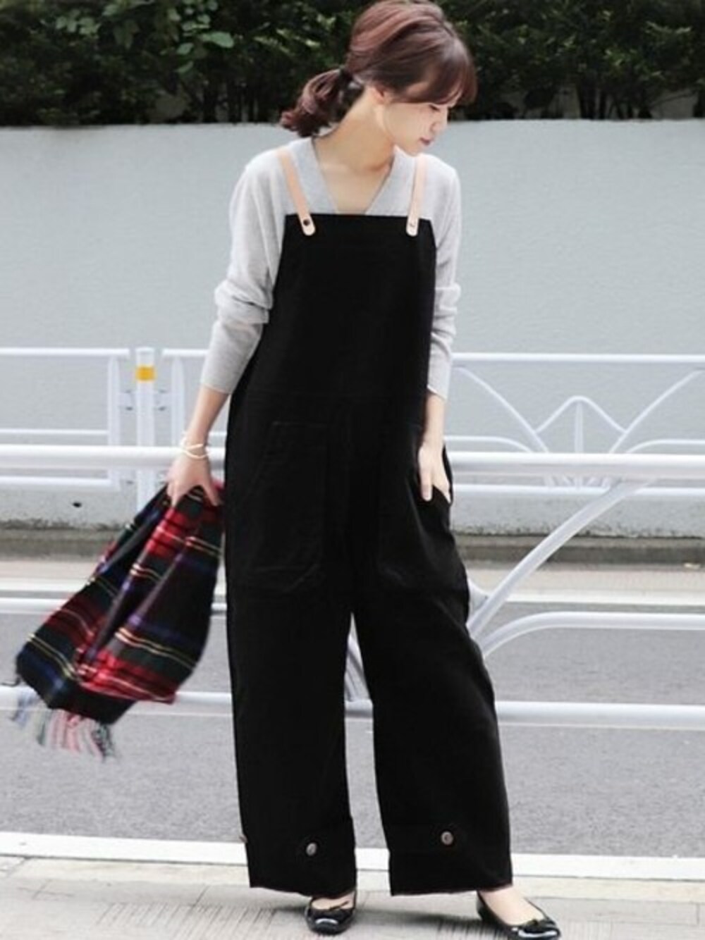 活動しやすくて、楽ちんでワードローブに欠かせないオールインワン。ニットをインして大人カジュアルに。