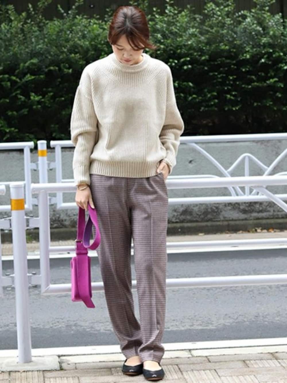 tokuhiroのニット/セーター「カシミヤアンゴラ混アゼクルーネックプルオーバー◆」を使ったコーディネート