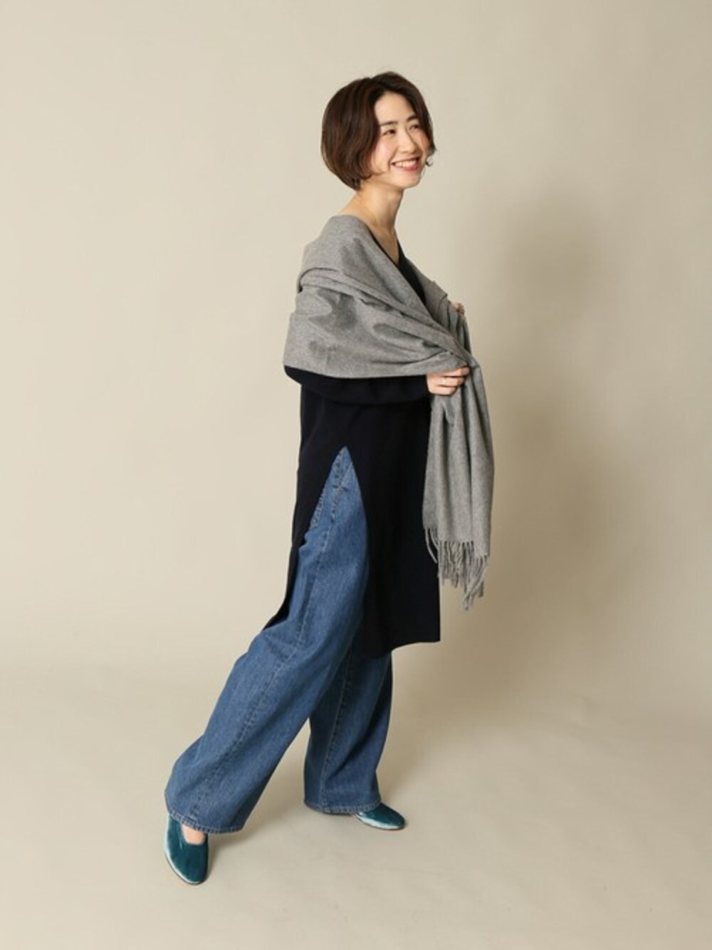 michiruのニット/セーター「JS+eカシミヤ混天竺 Vネックスリットチュニックプルオーバー#」を使ったコーディネート
