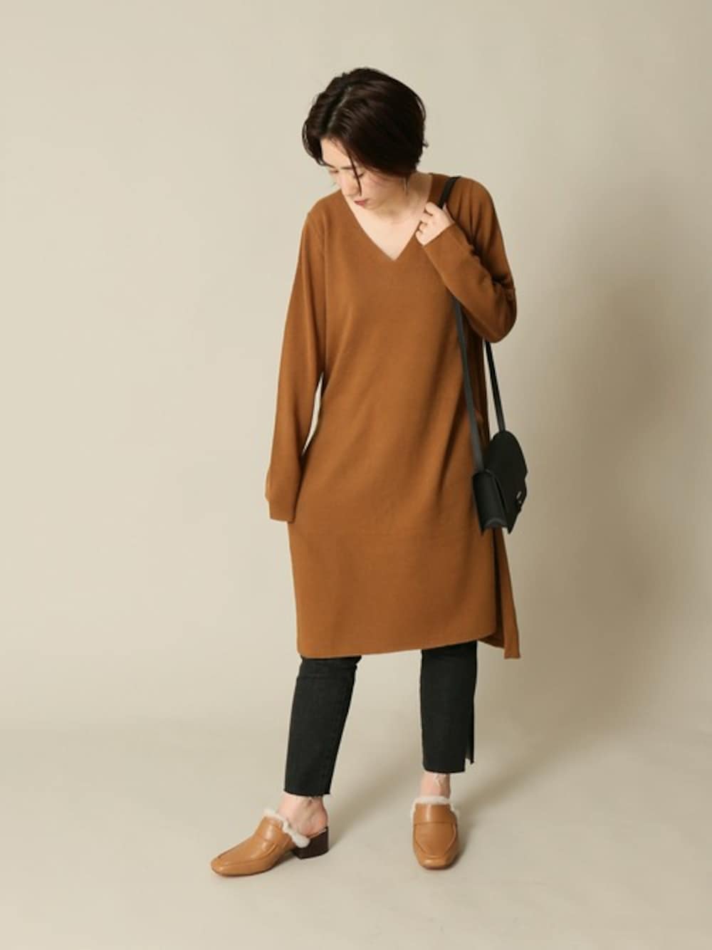 michiruのニット/セーター「JS+eカシミヤ混天竺 Vネックスリットチュニックプルオーバー#」を使ったコーディネート