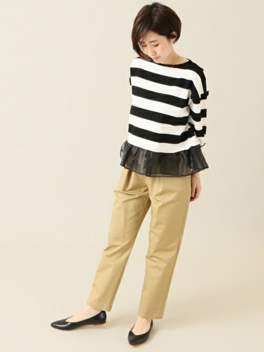 春の軽やかな着こなしを叶えてくれる裾フリルデザイン。 パンツを合わせて程良いレディライクさを演出!
