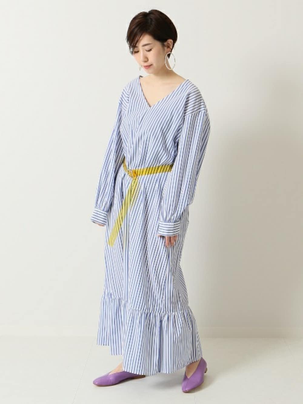 michiruのワンピース「JS+eタイプライターストライプマキシワンピース」を使ったコーディネート