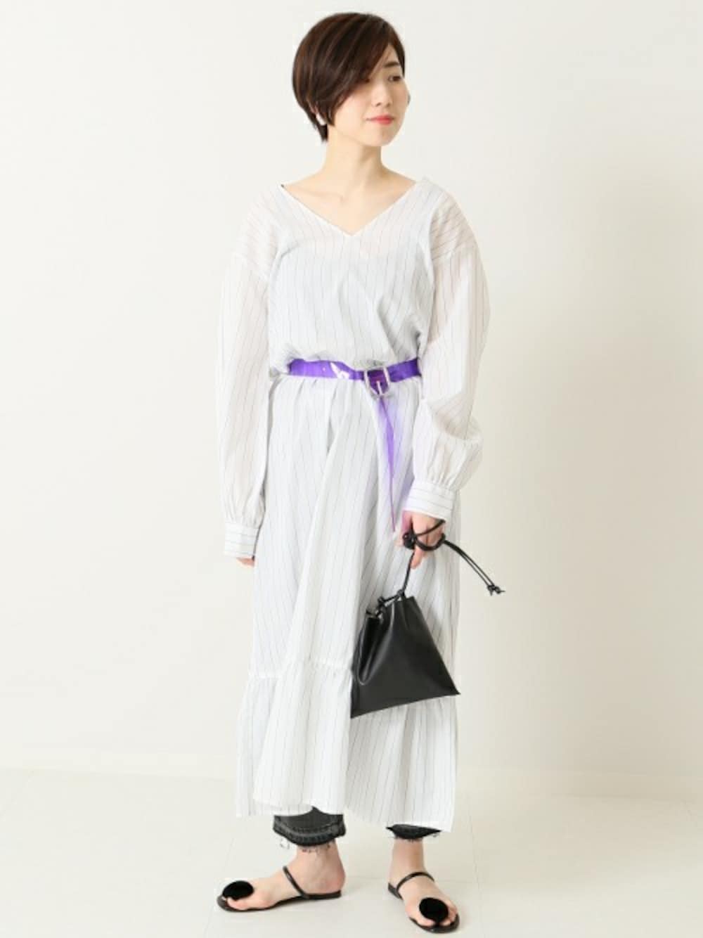 michiruのワンピース「JS+eタイプライターストライプマキシワンピース」を使ったコーディネート
