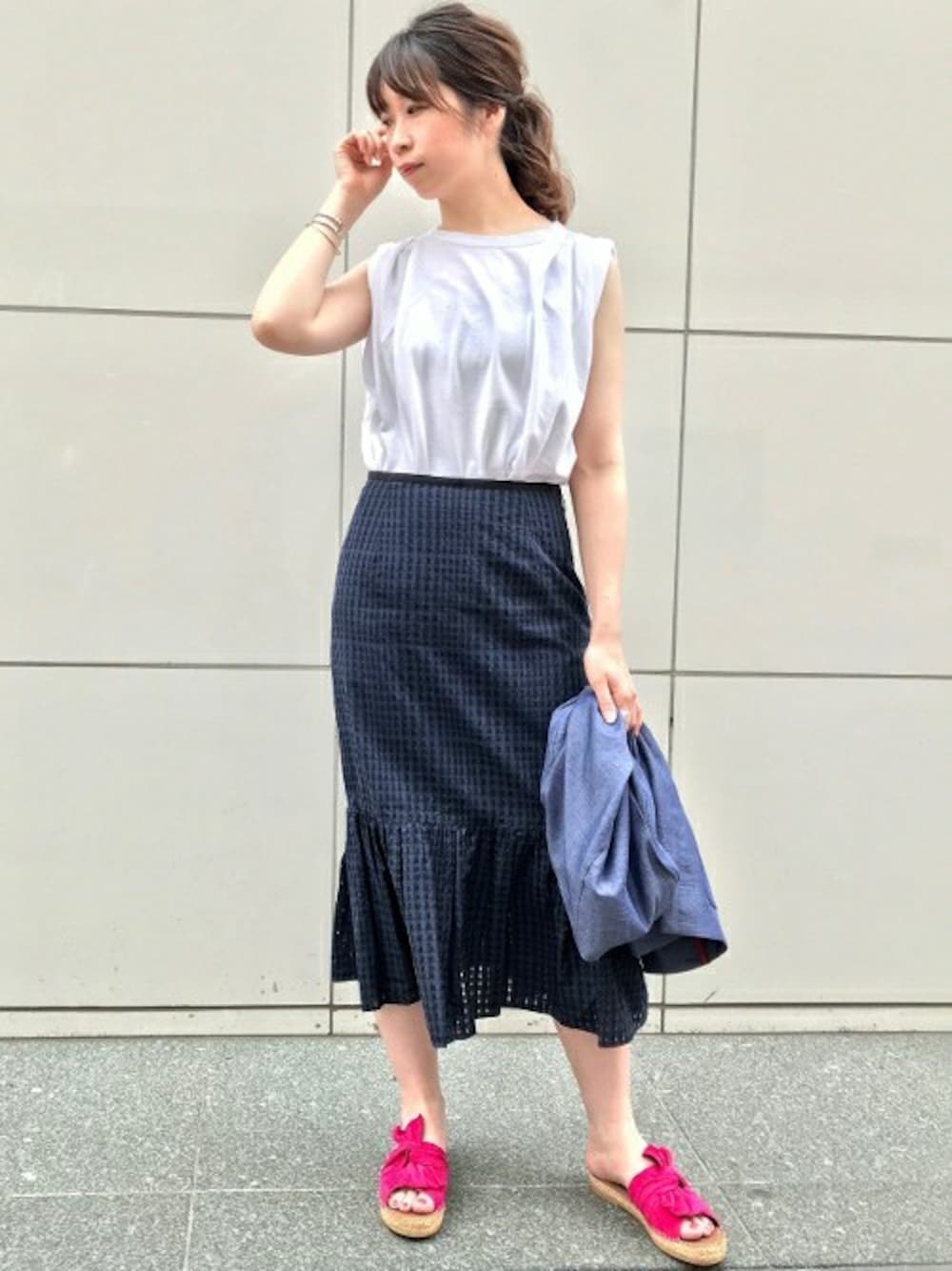 L'ESSAGE札幌店スタッフのスカート「イレギュラーギンガムスカート」を使ったコーディネート