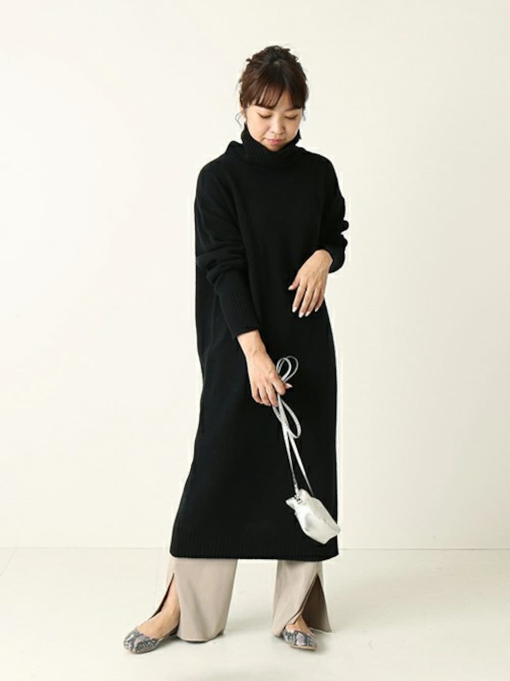 tsuruのワンピース「《WEB限定》JS+eウールカシミヤハイネックスリットワンピース◆」を使ったコーディネート