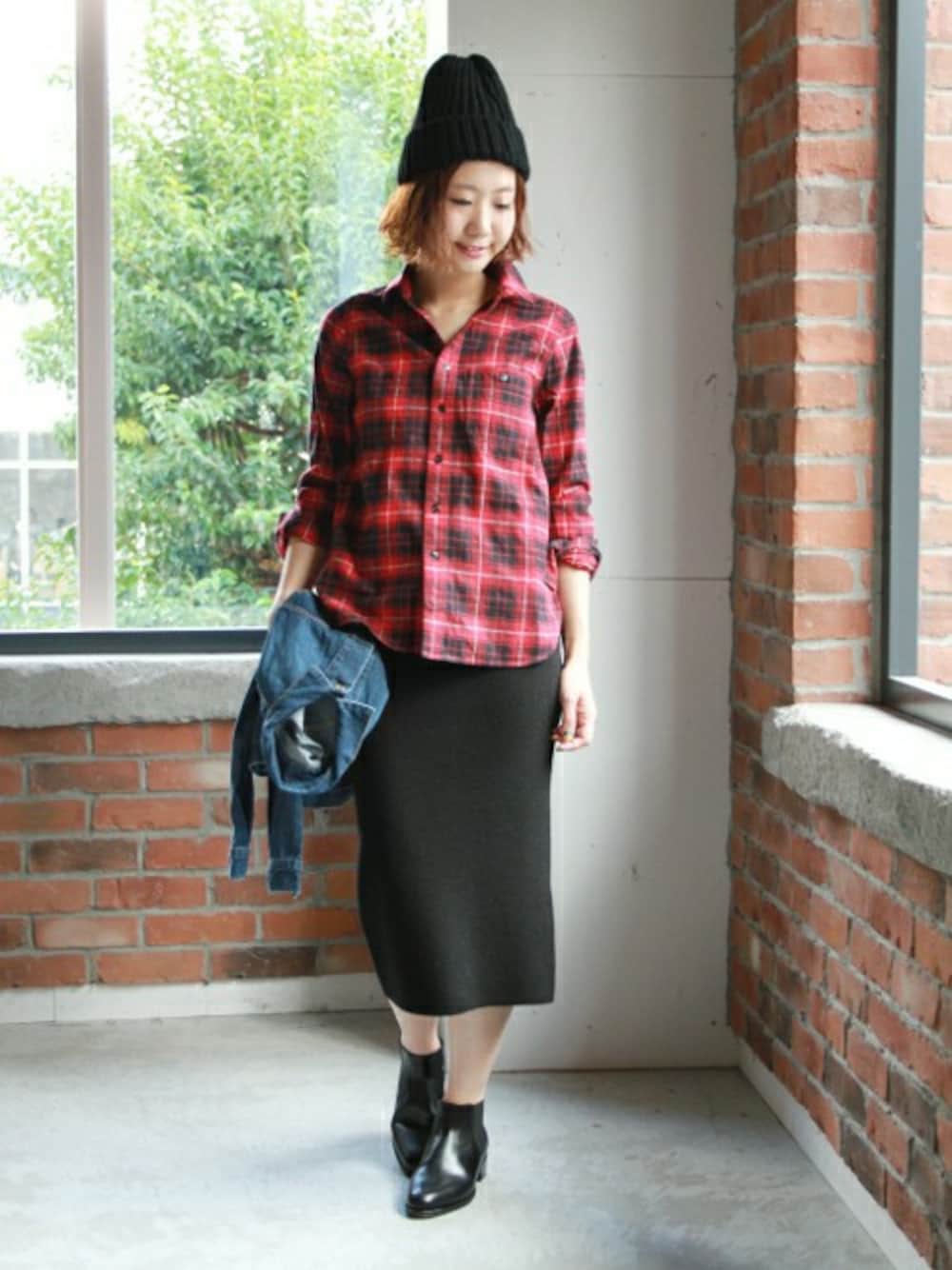 毎年人気のネルチェックシャツが今年も登場! カジュアルになりがちなチェックシャツも、タイトスカートとブーツでレディライクに。 程よいサイズ感で、一枚ではもちろん、Gジャンとのレイヤードも◎