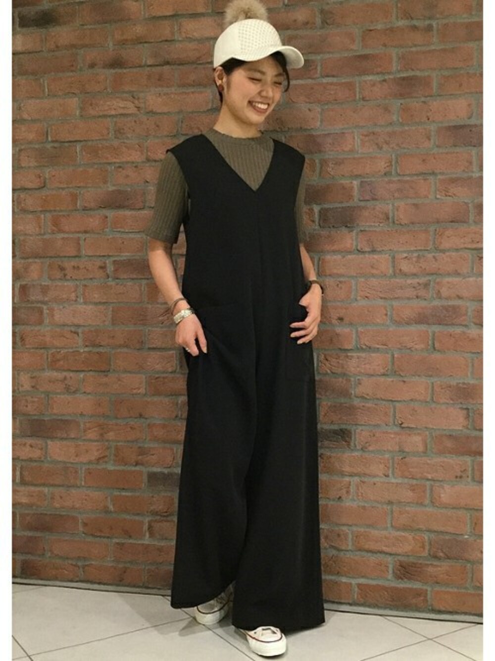 さらりとした素材感で、オールシーズン快適に履いていただけるサロペットを使用したコーディネートです。 キャップやスニーカーでカジュアルダウンすればトレンド感も抜群です!