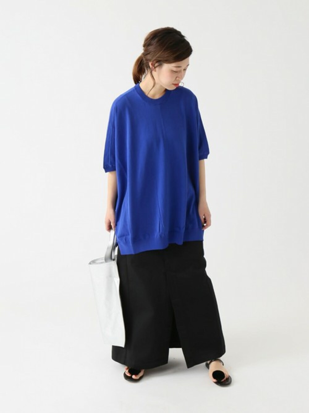 akiのニット/セーター「コットンPL C/N-ビッグプルオーバーニット#」を使ったコーディネート