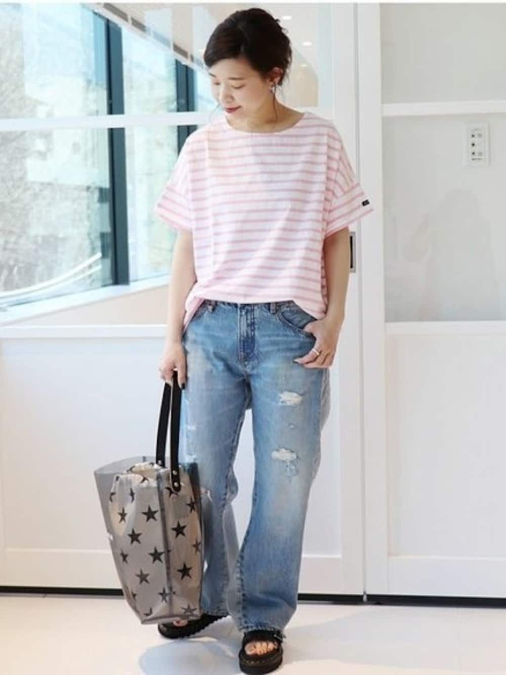 akiのTシャツ/カットソー「【Leminor/ルミノア】JS別注 ワイドボーダー半袖◆」を使ったコーディネート