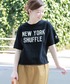 ロゴTシャツには張り感のあるマキシスカートを合わせて大人カジュアルに。
