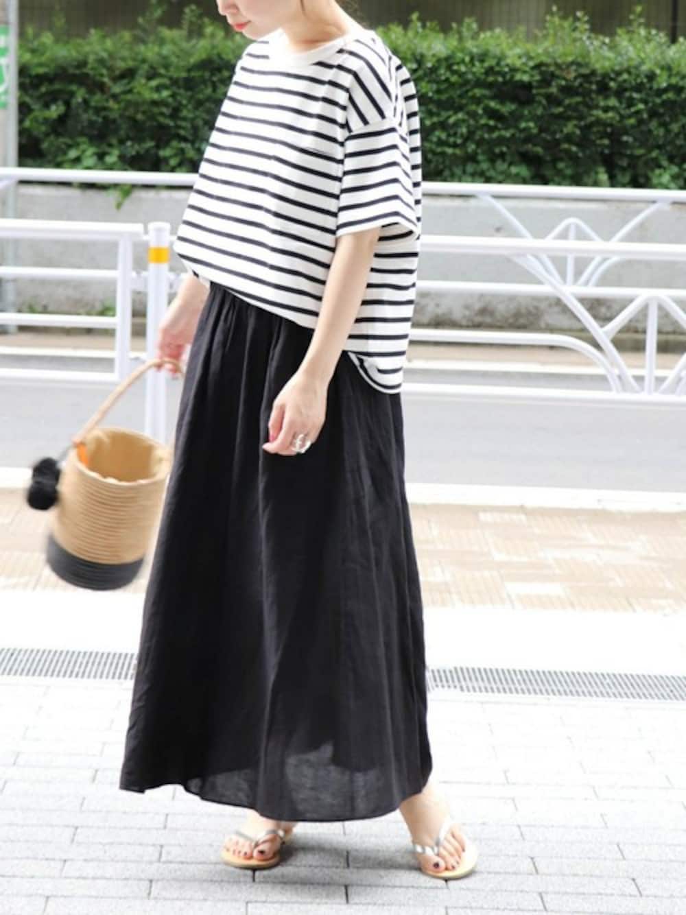 akiのスカート「FRENCH-LINEN タックギャザースカート」を使ったコーディネート