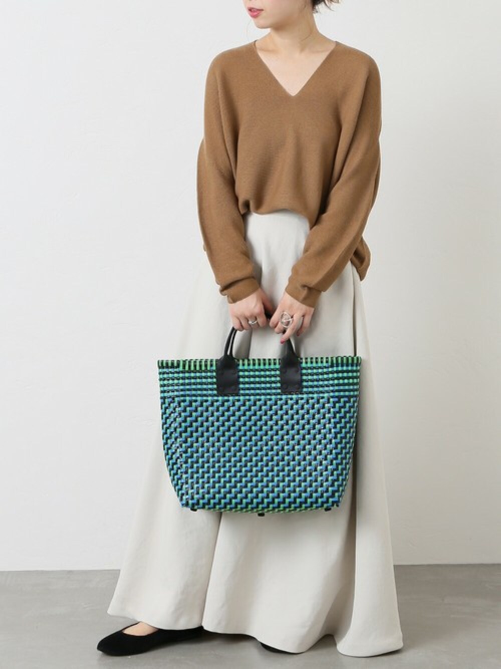 軽くて暖かいエアウール素材を使用し、ホールガーメントで立体的に編み上げた1枚。 マキシスカートと合わせて大人っぽく。