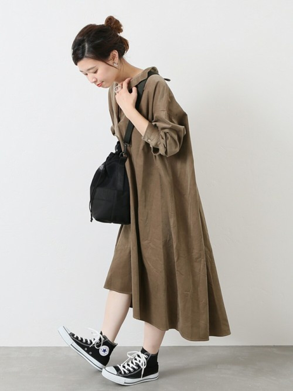 akiのワンピース「シャツコールレースアップAラインワンピース◆」を使ったコーディネート