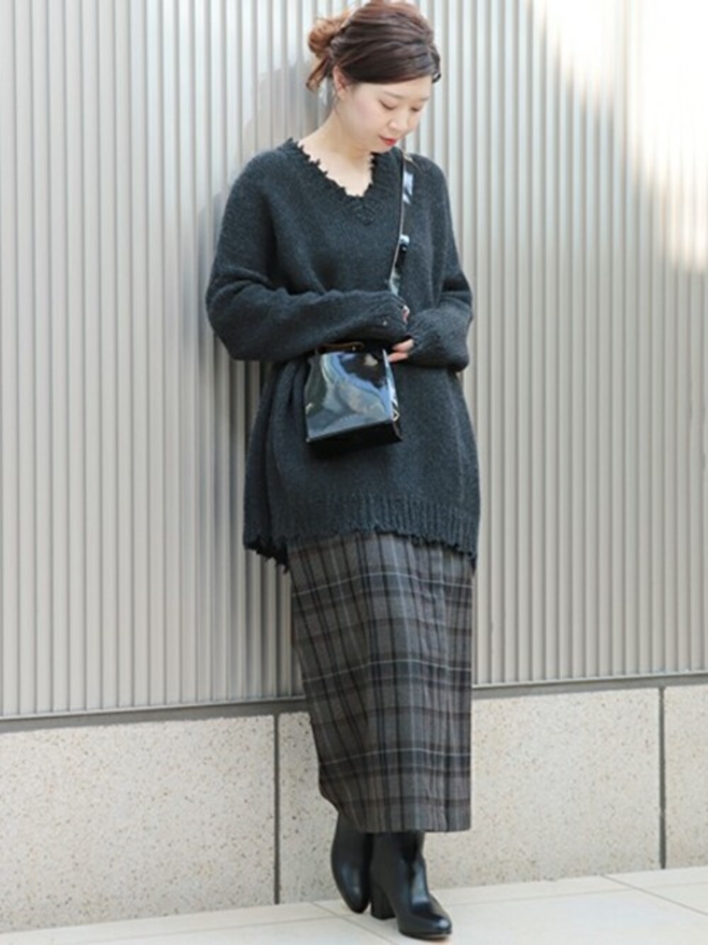 トレンドのチェックスカートはモノトーンコーデでシックに!