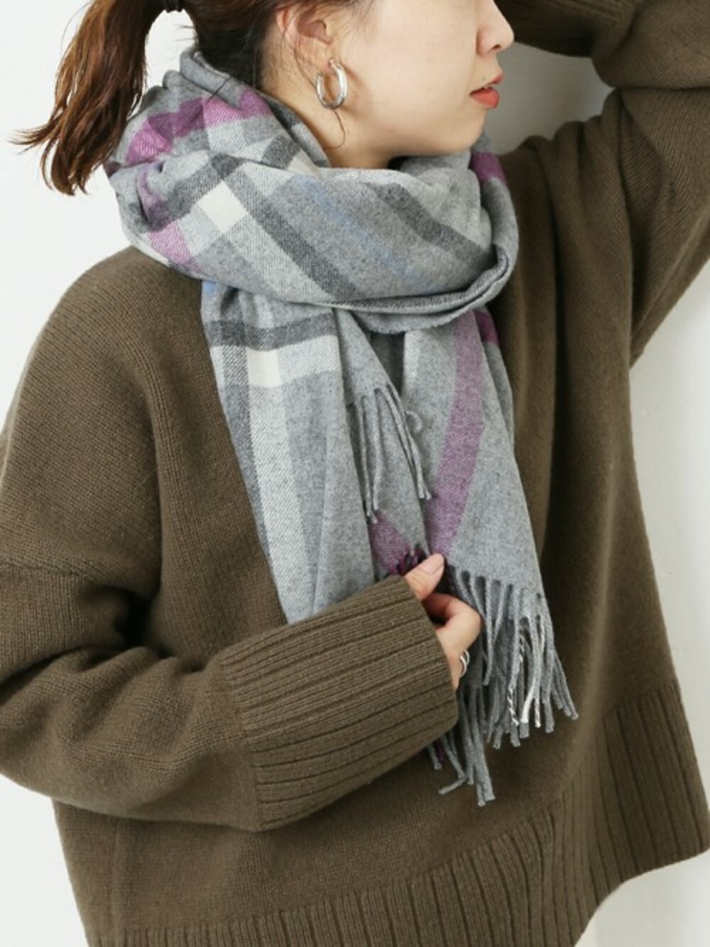 akiのストール/ショール「【Johnstons/ジョンストンズ】別注ウールカシミアチェックストール◆」を使ったコーディネート