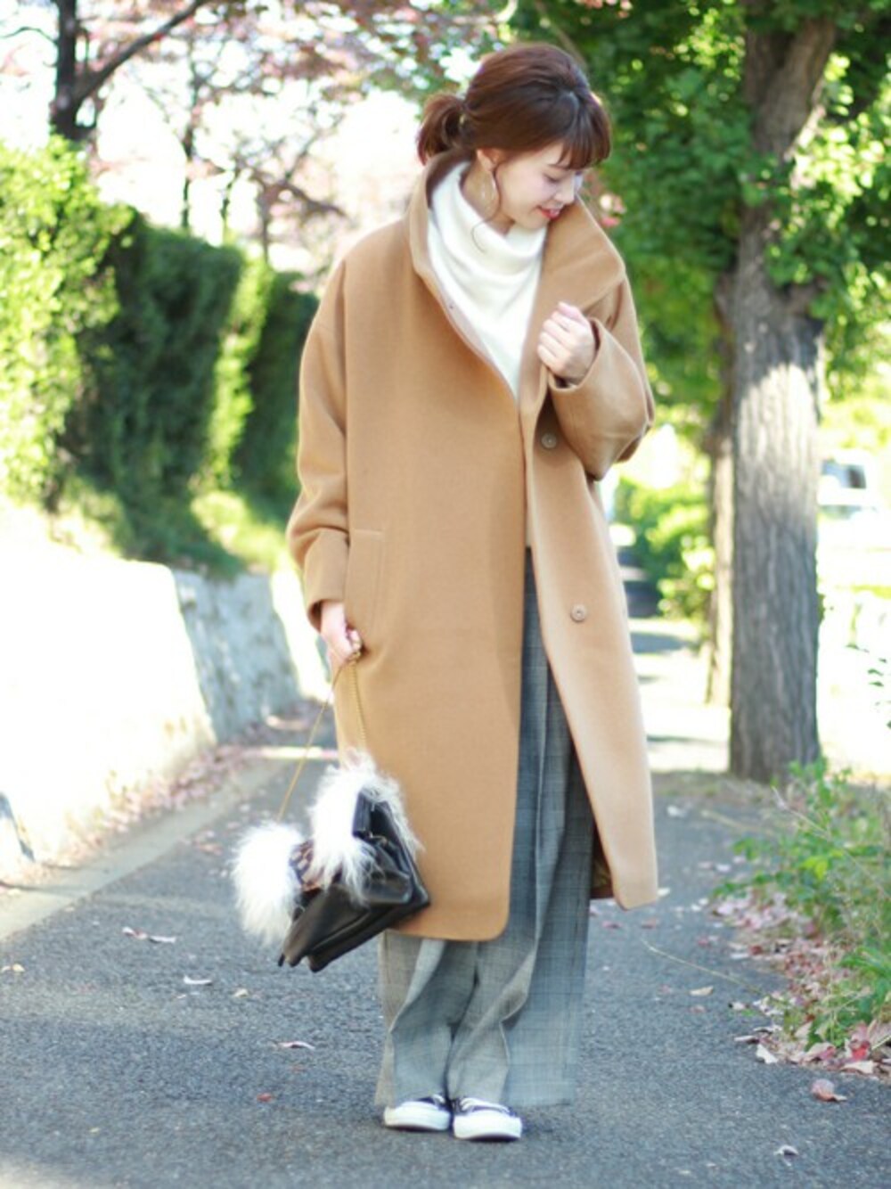 akiのその他アウター「ソフトモッサスタンドカラーコート#」を使ったコーディネート
