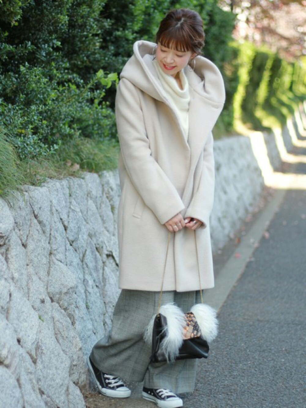 ダブルモッサー2Wayフードロングコート 毎年大人気の2WAYフードコートが今シーズンも登場! 密度が高く表面がふんわりとした毛羽で覆われた素材で、軽くて柔らかく、保温性に優れているのが特徴です。 フード周りが女性らしく、カジュアルなスタイリングにも女性らしさをプラスしてくれます。