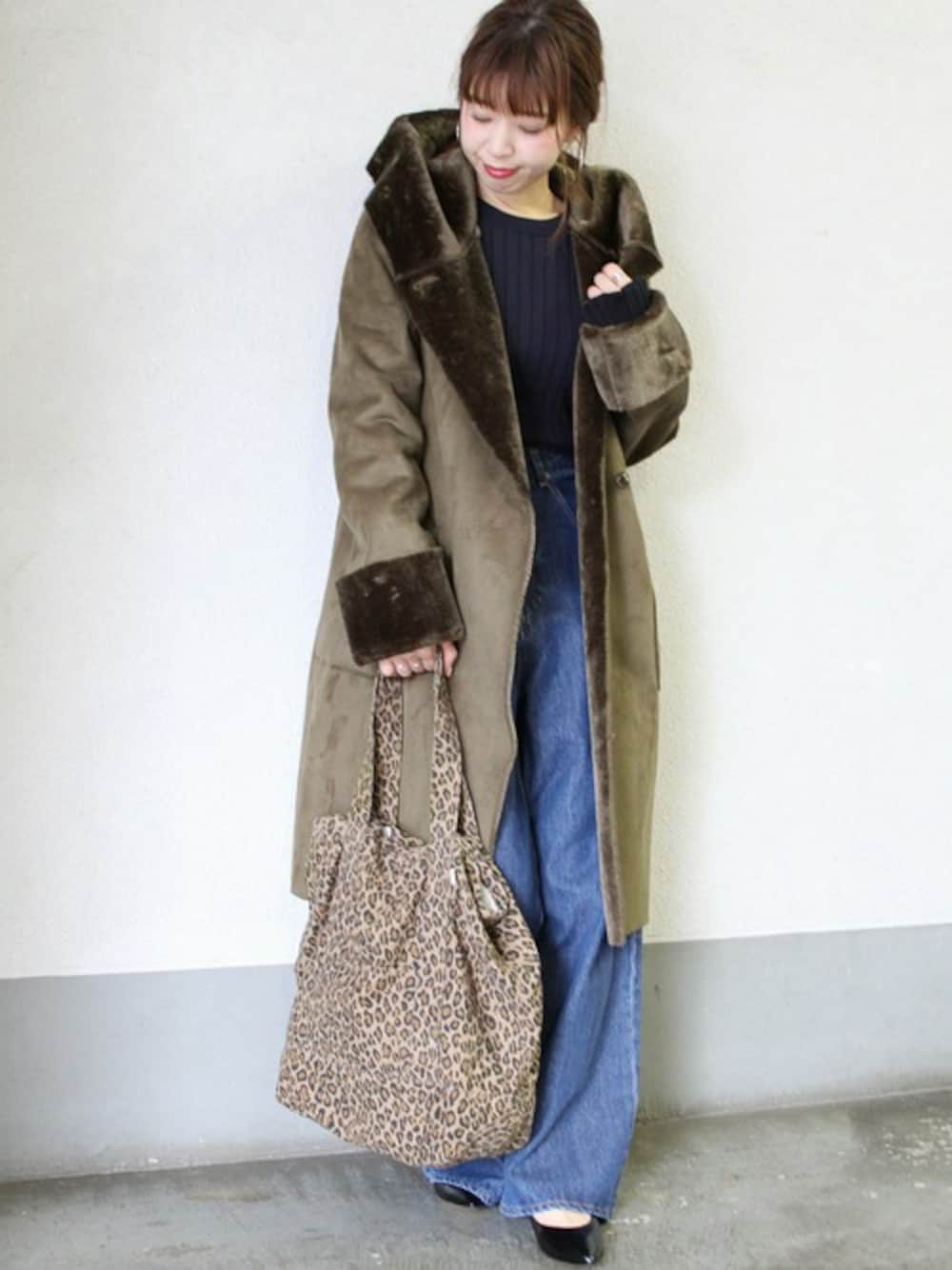 akiのムートンコート「フェイクムートンフードコート_#」を使ったコーディネート