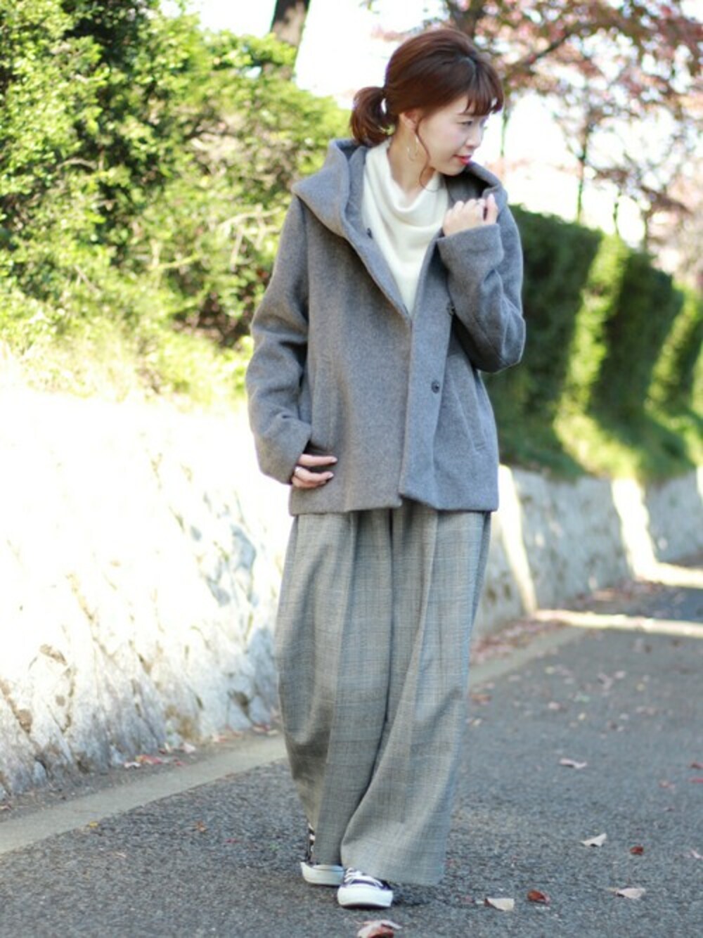 akiのその他パンツ「チェックストレッチワイドパンツ#」を使ったコーディネート
