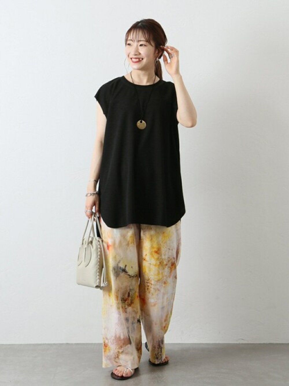 ■カットジョーゼットプルオーバー ヘルシーな肌見せが叶う!優秀プルオーバーが新登場 サラッと清涼感ある素材で夏に着ても涼しくて楽ちんな1枚◎ きれいめな素材ながら、裾などを切りっぱなしにすることでカジュアル感をプラス。 パンツに合わせてもスカートに合わせても程よく品のあるスタイルに! 同素材のパンツとセットで着てるのもおすすめです。 ベーシックなブラックに加え、今シーズンらしいブラウンとピンクをご用意しました。 ※同素材のパンツもご用意しております。 21070400902020 カットジョーゼットパンツ サイズ感:ゆったりしています。丈も長めで安心感があります。 素材感:サラッとしているので上品に見えます。 着心地:柔らかく肌触りも良いです。