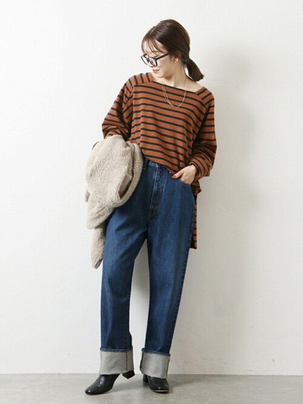 ■ボーダースクエアネックプルオーバー シンプルなデザインながらスクエアネックがレディライクな印象のカットソー。 オーバーなシルエットや深めのサイドスリットで抜け感のあるラフな雰囲気が魅力です。 パンツはもちろんスカートとも相性良く合わせて頂けます。 サイズ感:程よくゆとりがあります。 素材感:綿100%で一枚着にちょうどいいです。 着心地:インして着ても程よいボリューム感です。もちろんさらっと一枚でも◎
