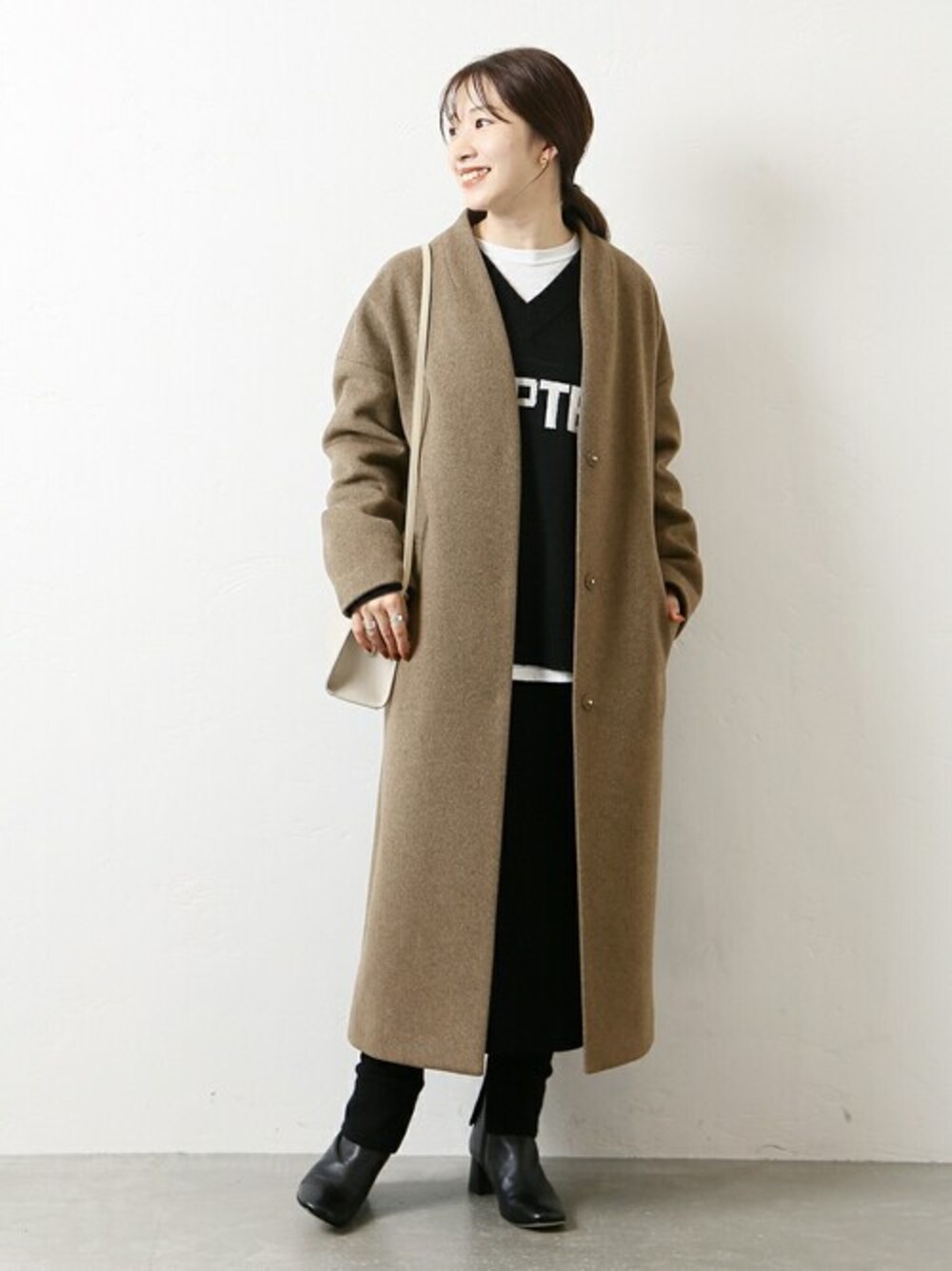 kuboのノーカラーコート「スーパー140ビーバーVネックコート◆」を使ったコーディネート
