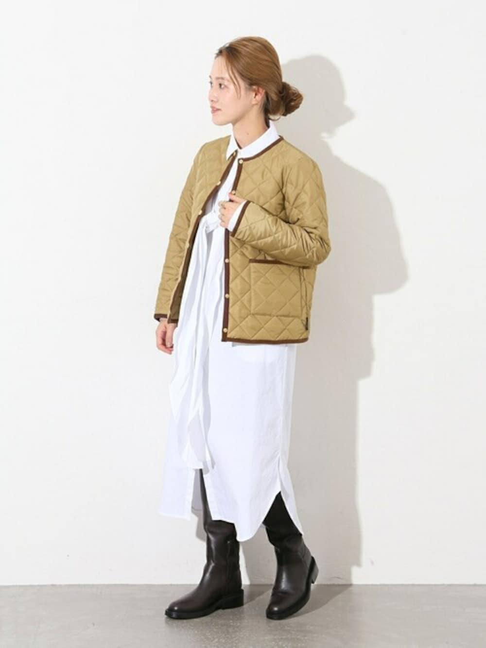 ■【TRADITIONAL WEATHERWEAR 】ARKLEY:別注ブルゾン 毎シーズン定番アイテムとして人気のARKLEY! 今シーズンはジャーナル別注モデルが登場しました。 着丈が少し長くなっていて、ヒップ周りが気にならないのがポイントです◎ ゴールドのスナップボタンやパイピングなど細かい仕様も素敵なデザインです。 シンプルなシャツワンピースに羽織るだけでも華やかな印象に。 【TRADITIONAL WEATHERWEAR (トラディショナル ウェザーウェア)】 MACKINTOSHがプロデュースする英国の伝統的なスタイルを再解釈したカジュアルウェアブランドです。 英国の伝統と今の気分を感じさせるコレクションを展開しています。 サイズ感:コンパクトですっきり着られます。 素材感:程よく厚みのあるキルティング素材。 着心地:とても暖かいです。軽いので楽に着られます。