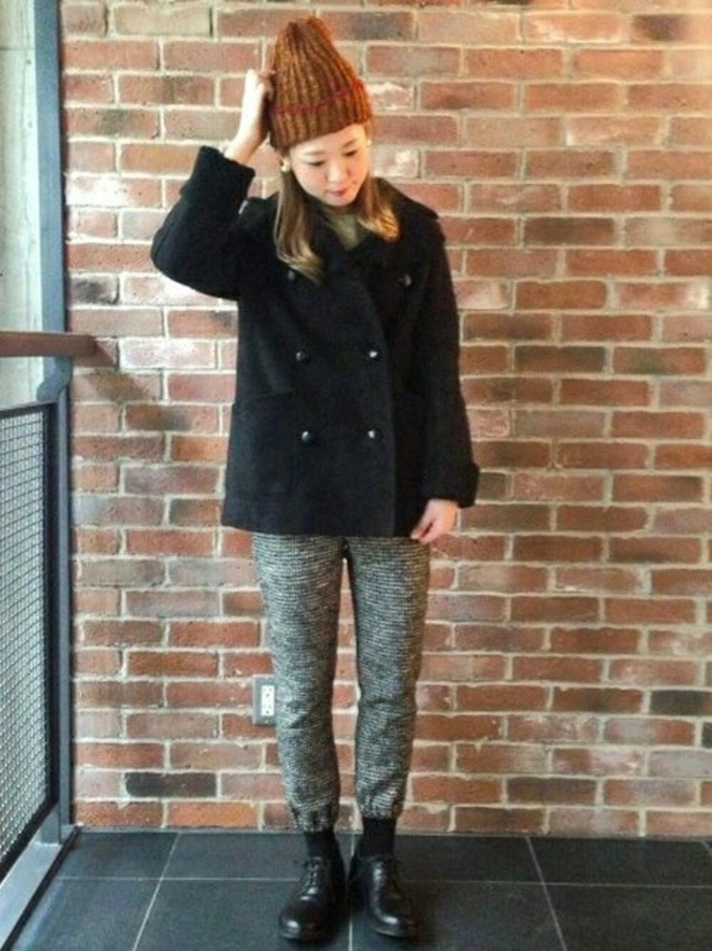 カジュアルなパンツスタイルには、上品なムートン素材のPコートを合わせて。 カジュアルな中にも大人な上品さをプラスしました。