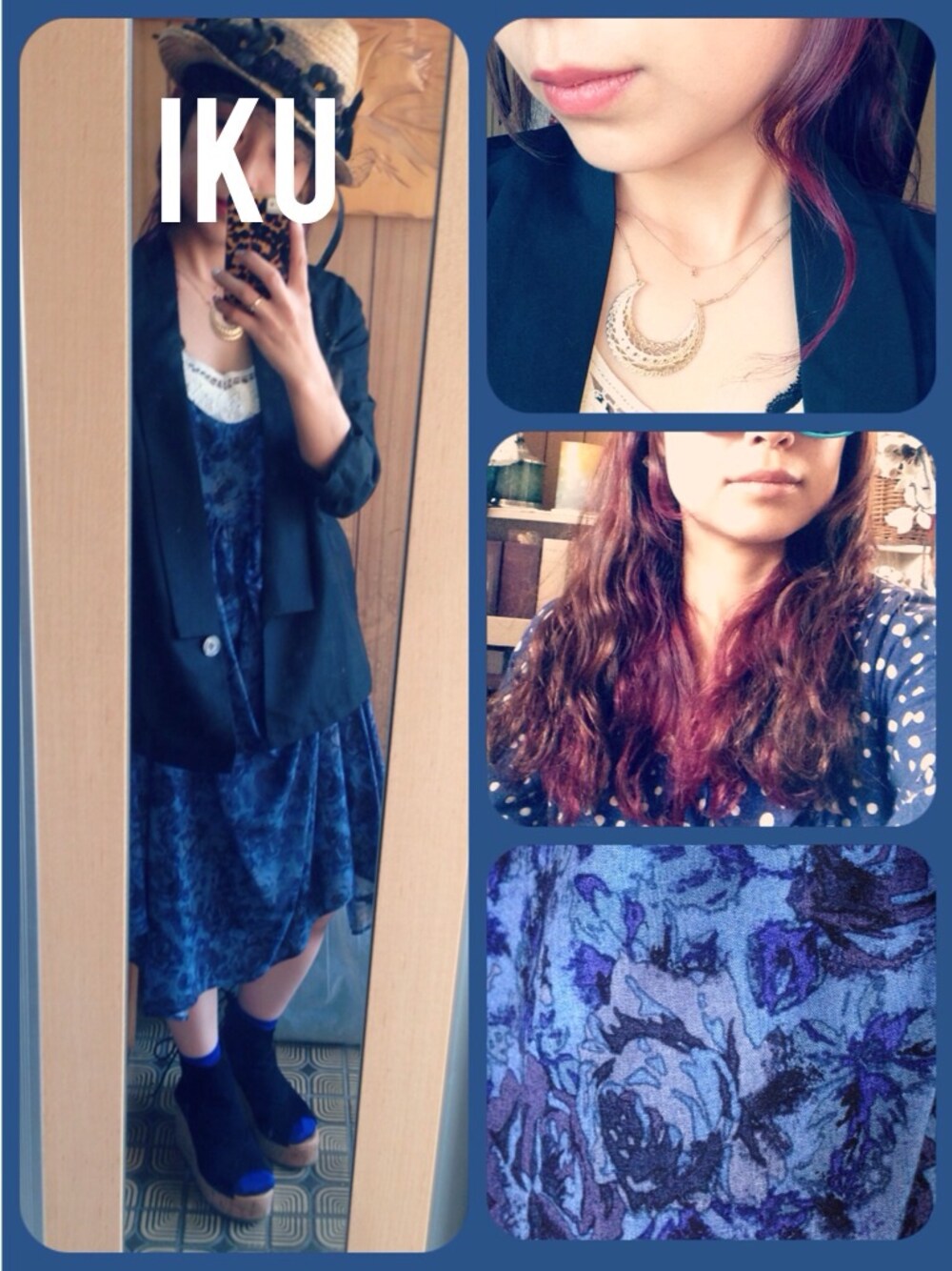 美容院へカラーしに行ってきたよ🎶 中側をピンクバイオレットにした♥︎ 前髪もやったけど綺麗に入らなかった… 髪の毛が少しダークになったので服装もダークに。 ブルーが最近の流行りなのでワンピもソックスもブルー! furfurのキャミワンピは変形になってて柄もバラ! ヒールが脱げる足にはブーディータイプのサンダルで!