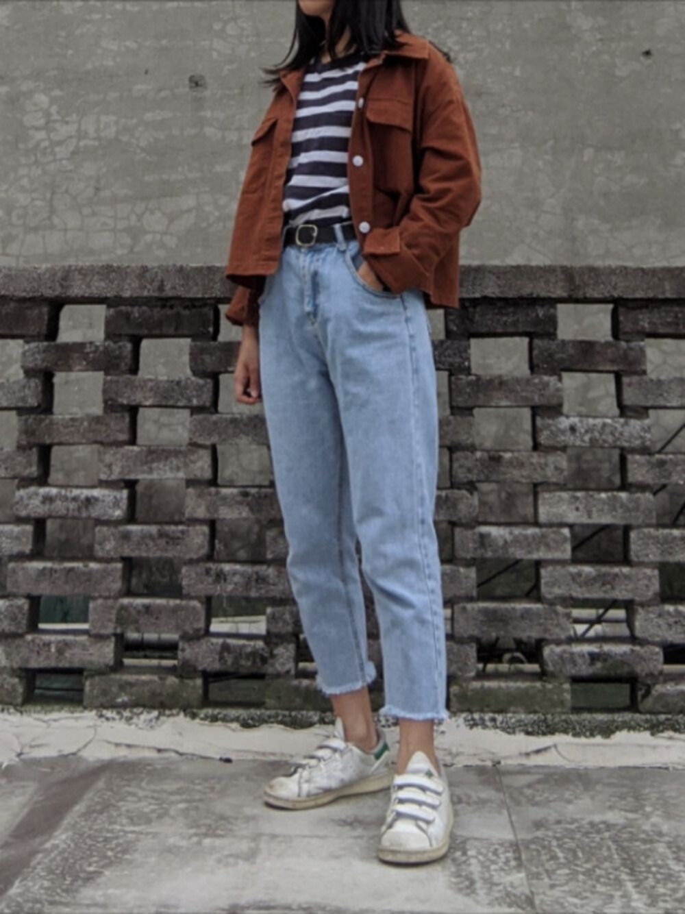 庫存偷偷拿出來放>< 之後要換地方拍ㄌ! 希望有好ㄉ空間+好ㄉ光線! . . outer // #meierq top // #gu shoe // #adidas . .